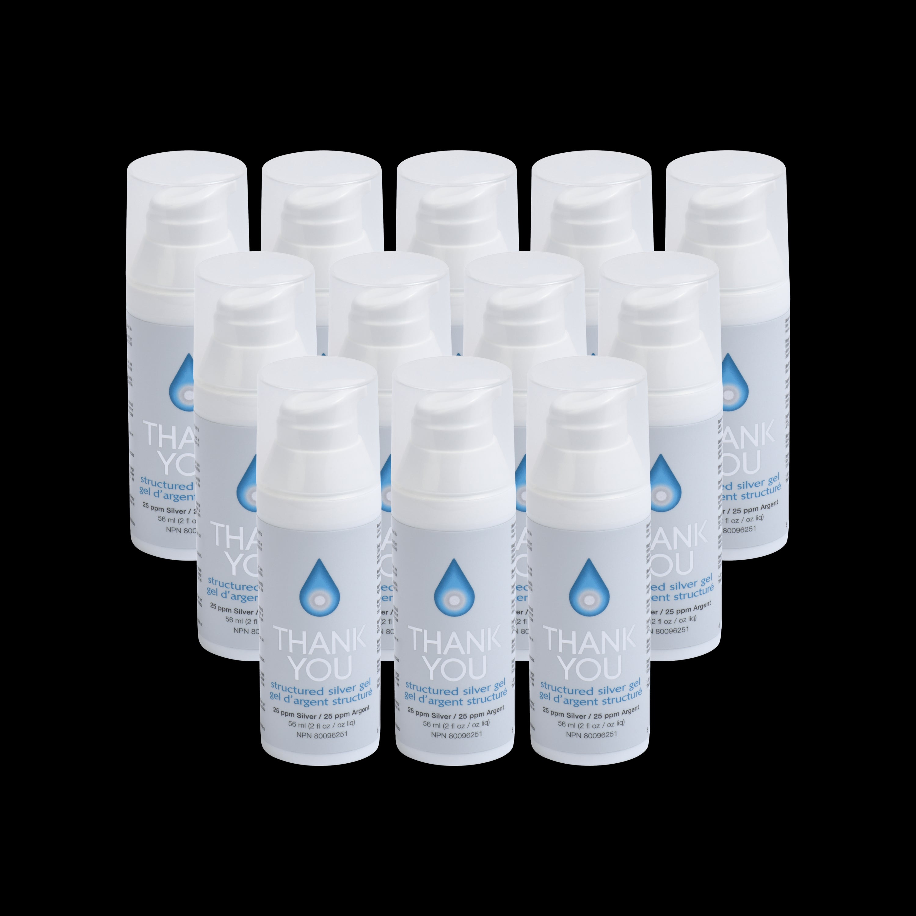 Thank You Structured Silver is made using structured water and pure silver, providing ideal access to silver. It is pH balanced to match the human body - mild alkaline for the liquid and a mild acid for the gel.